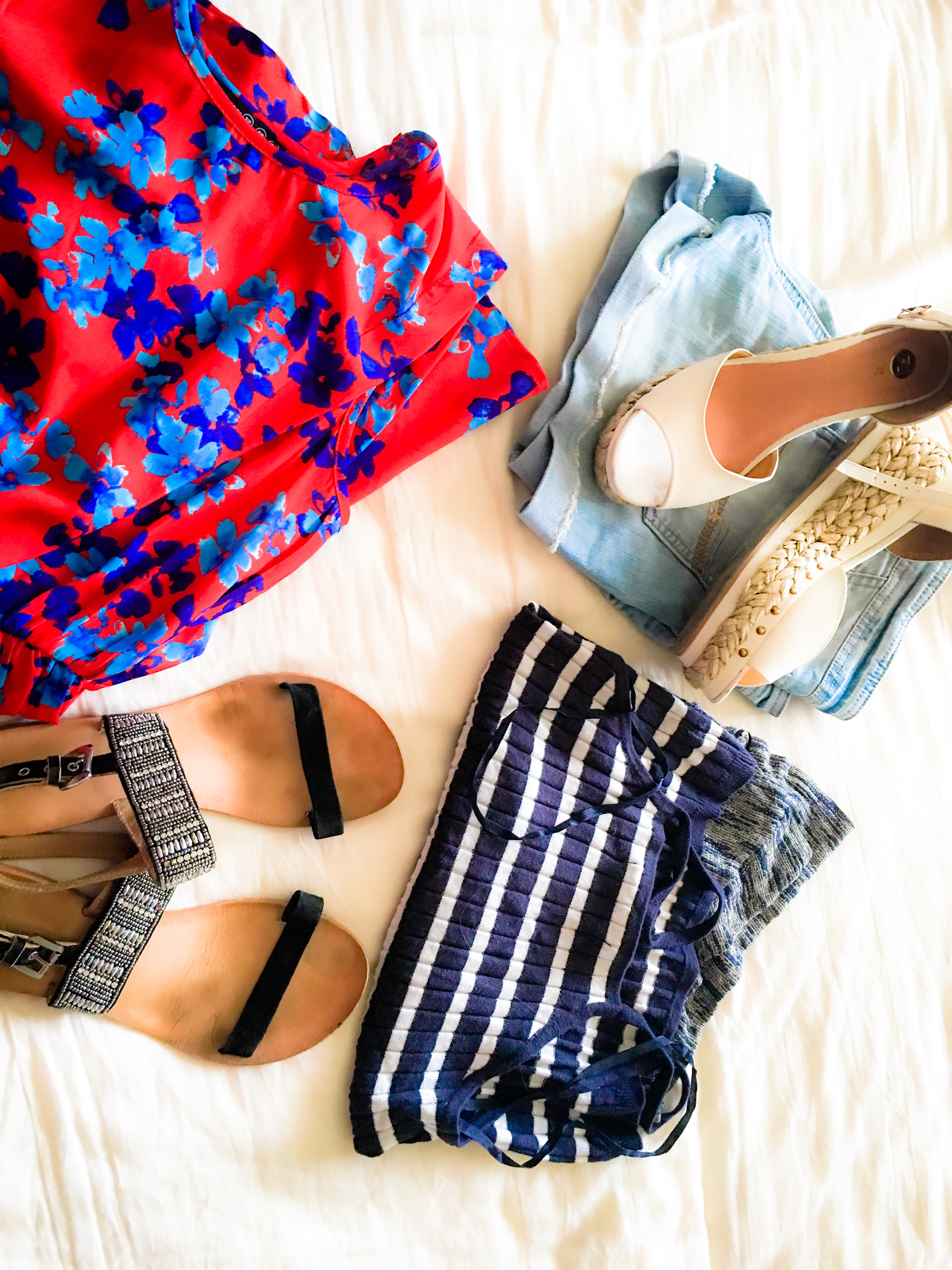 - Lay out all of your outfits on the bed and try to pack items that you can mix and match.